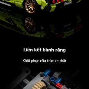 - Chi tiết chân thực: Với 1254 mảnh ghép, mô hình Lamborghini này mang lại sự chân thực và sắc nét trong từng chi tiết. Từng bộ phận của xe từ thân xe, cửa xe, đến các chi tiết nhỏ như gương chiếu hậu đều được thiết kế tỉ mỉ.