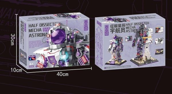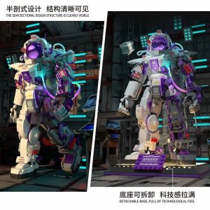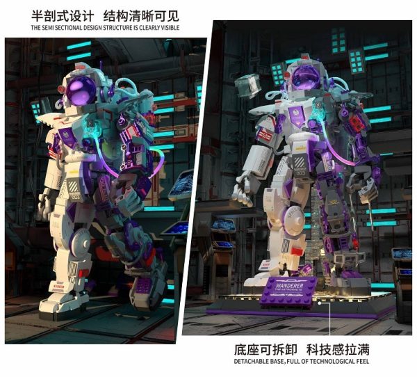 – Thiết Kế Nửa Thân Cơ Khí: Phi hành gia có một bên là bộ giáp hoàn chỉnh và một bên là cơ cấu cơ khí chi tiết, tạo nên sự thú vị và độc đáo cho mô hình.
